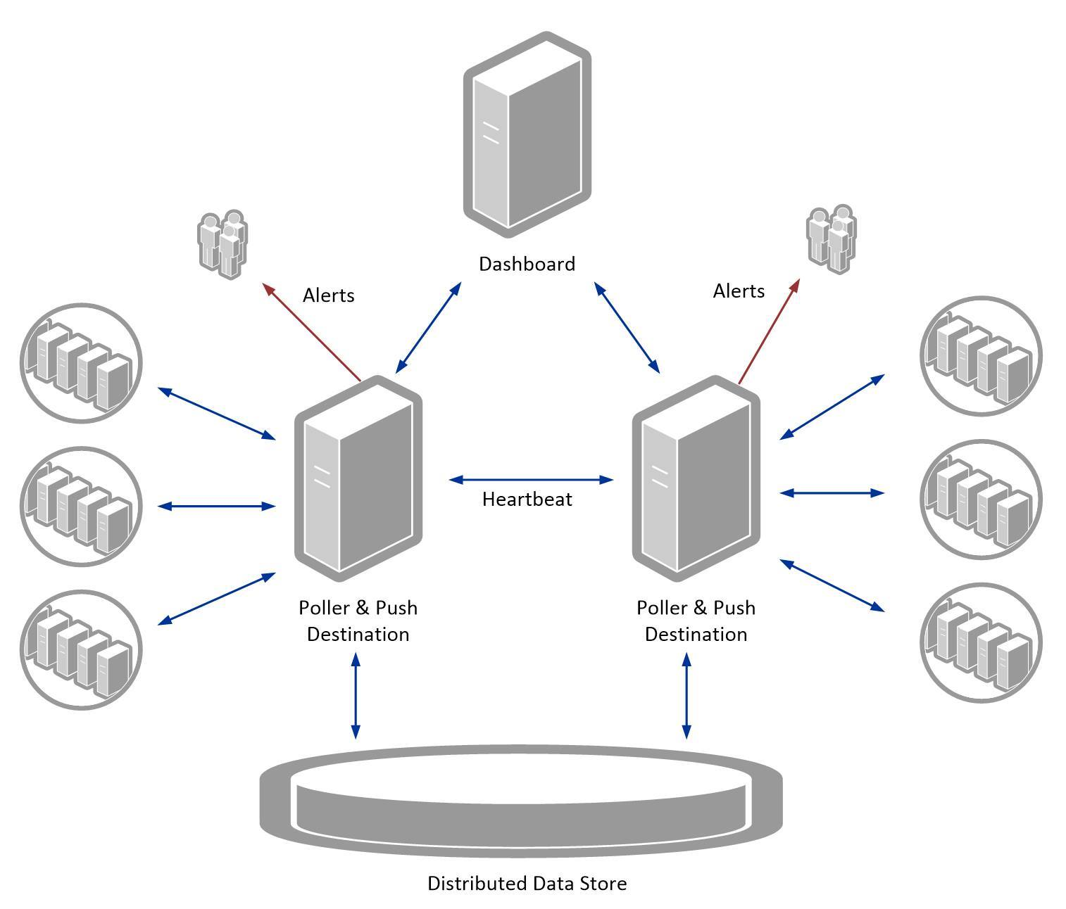 아래 그림이 해당 시스템을 간단하게 표현해 주는 것 같습니다 (큰 시스템에서는 Poller를 여러개로 묶어 Clustering 되어 보이는데 모니터링 대상이 적어 단일 Poller로 가능합니다)