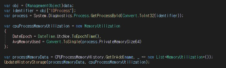 찾아보니 Process memory는 WMI 말고 .NET에 Process 클래스가 제공되었습니다