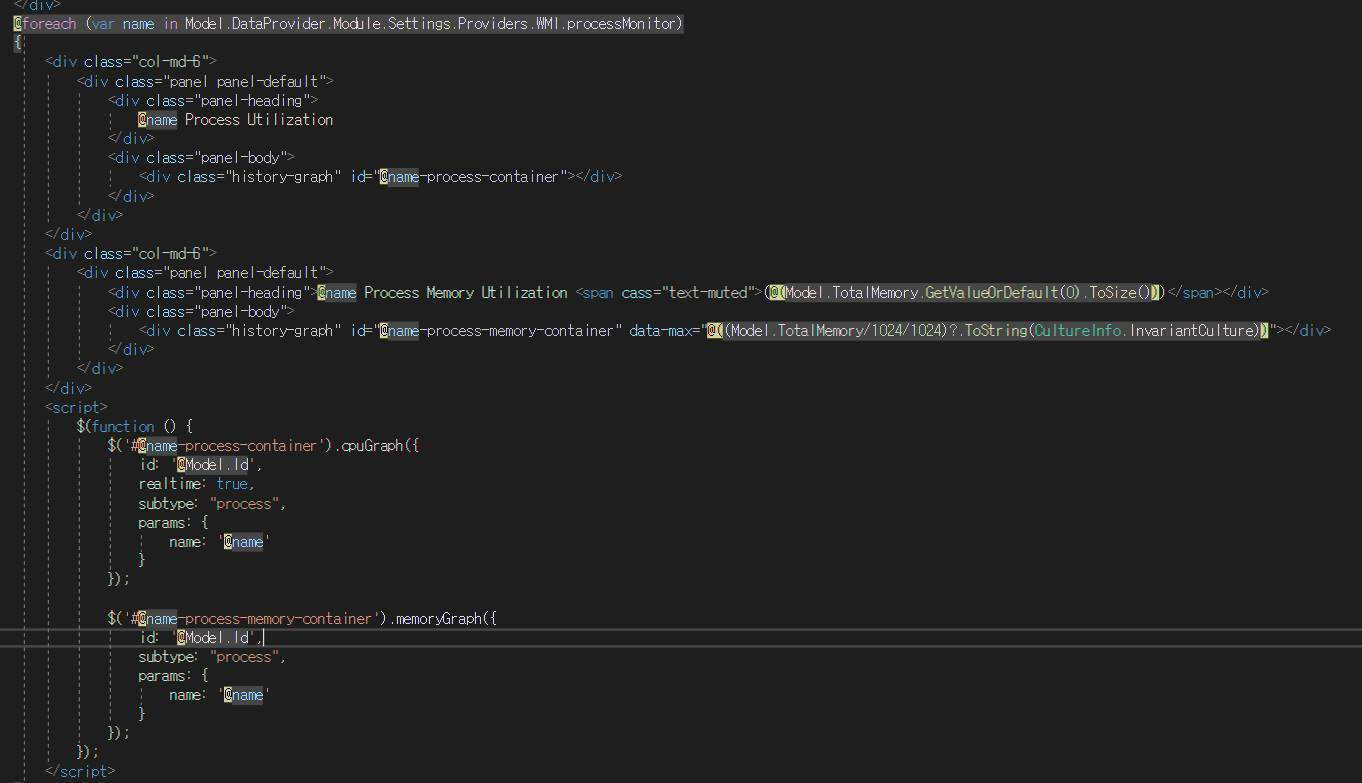 여기도 Process name을 사용하게 때문에 설정에서 가져온 이름으로 foreach 돌면서 차트를 그리게 했고 내부에서 스크립트를 호출하게 두었습니다